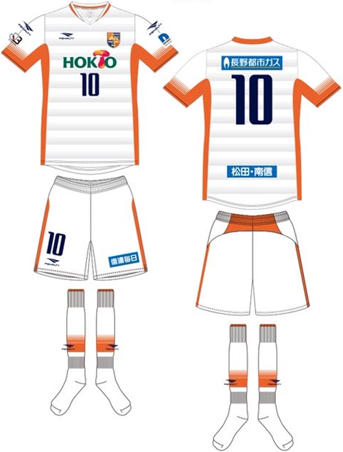 背中に昨季袖の「長野都市ガス」が入り、空いた袖は「デンセン」、背中下部には「松田・南信」と、長野県長野市に本社を置く2企業と新たに契約を結んでいる。