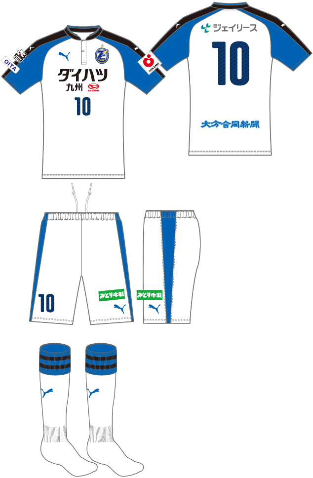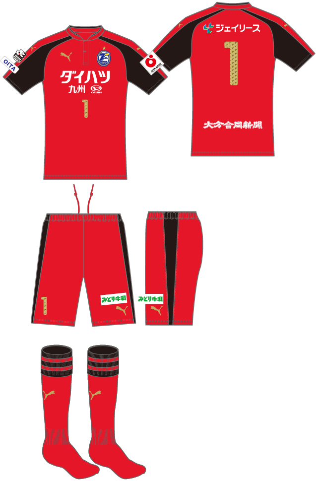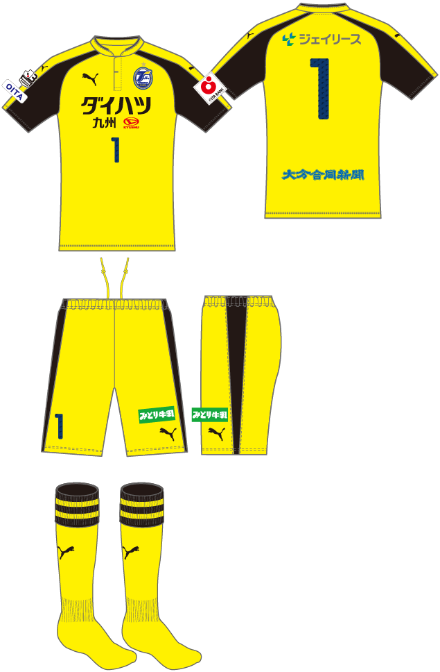 ユニフォームスポンサーは、胸の「ダイハツ九州」、パンツの「九州乳業」が継続。背中に昨季袖の「ジェイリース」が移り、袖は「大分銀行」、背中下部は「大分合同新聞社」と新たに契約を結んでいる。