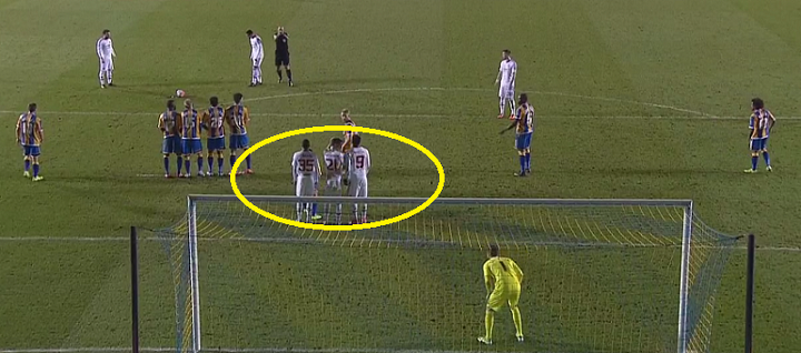 ジェシー・リンガード、アンデル・エレーラ、アントニ・マルシャルがシュルーズベリーGKの前に立ち、"壁”を作ったのだ。