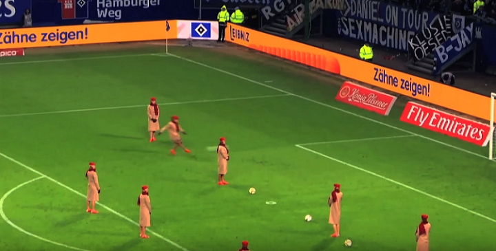 実は昨年10月にベンフィカの試合前でも行われていたのだが、この日フォルクスパルク・スタディオンで行われたのはその時のものは少し違っていた(ともに胸スポンサーがエミレーツ航空である)。
