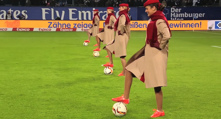 そう、なんとピッチ上で美女CAたちがボールを扱い始めたのだ!