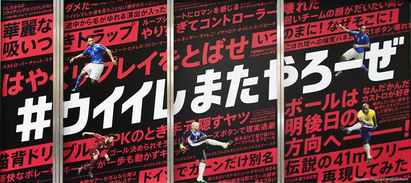 入口横には『#ウイイレまたやろーぜ』のキャッチフレーズとともに、「リプレイとばせ」などあるあるネタから「ドイツでカーンだけ別名」という大人の事情まで。