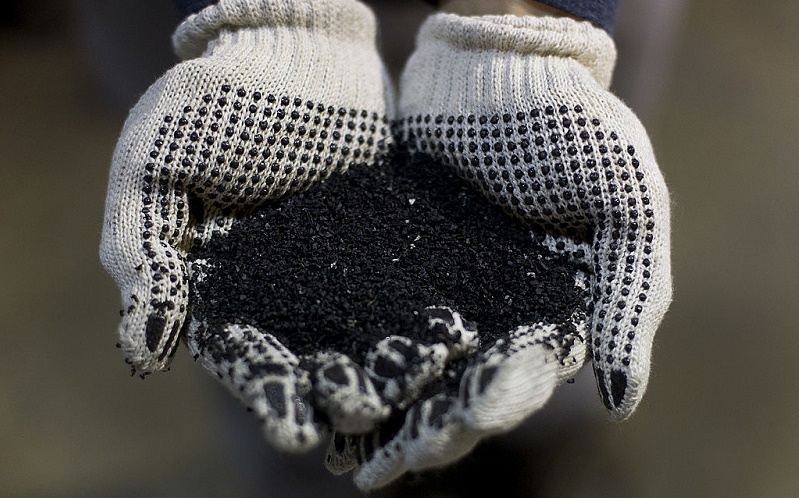 クラムラバーは直訳すると「再生ゴム粉」の意味で、使用済みのゴムや古タイヤなどを粉砕したものである。