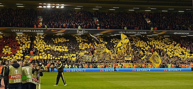 この試合に際し、ドルトムント側はリヴァプール側に連帯の意思を表明。そういった経緯があり、アウェイのファンもこのようなモザイクを演出したのだ。