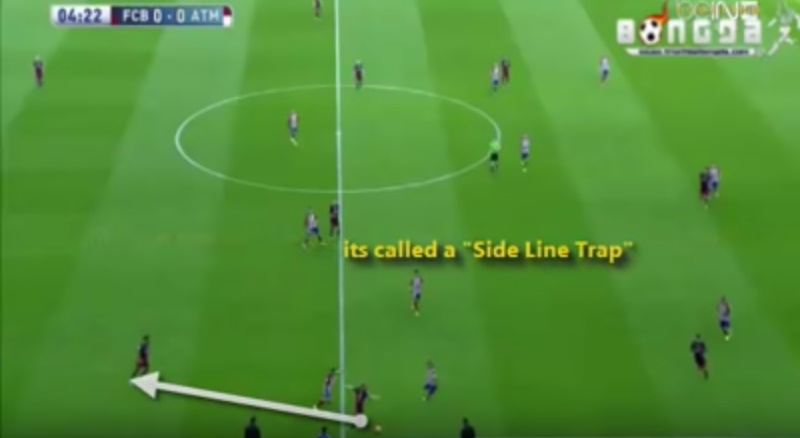 テキストは英語であるが矢印や囲いなどを用いてビジュアル的にわかりやすく構成されており、バルサ相手に彼らがどうやって守っていたのかが解説されている。