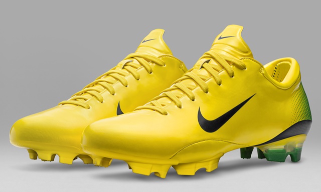 2006年、クロームイエローとパイングリーンの限定版の「ナイキ マーキュリアル ヴェイパー III」を着用し、当時、ロナウドがフットボールの祭典で歴代最多得点記録を更新しました。ブラジル ユニフォームに合わせたカラーリングのこのスパイクは、初めて視認性を高めるためのHi-Visカラーを、またアッパーには足なじみの良さを提供する、帝人®のマイクロファイバーを採用しました。