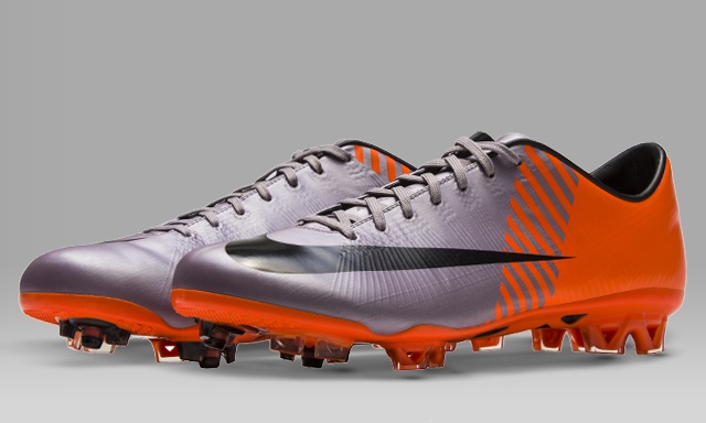 「ナイキ マーキュリアル ヴェイパー スーパーフライ」は、2010年の夏、南アフリカで、このスパイクとともに大きな存在感を見せつけたクリスティアーノ・ロナウドの声を生かして作られました。メタリックマッハパープルとトータルオレンジのカラーは、チーターをインスピレーションに、試合環境においての、プレイヤーの周辺視野を刺激するためのカラーに関する深い研究の結果選び出されました。特にこの目立つカラーはプレイヤーにチームメートを素早く見つけ、ピンポイントのパスを送りやすくします。またこのスパイクには、加速や素早い方向転換を楽にするナイキ センス テクノロジーが使われています。