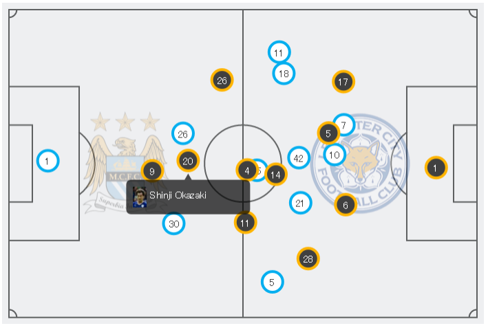 上記は、2月のマンチェスター・シティ戦。ヴァーディ(9番)の背後に位置する岡崎を確認することができるだろう。