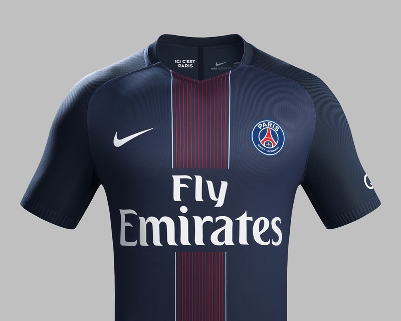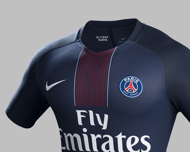 PSGの2016-17ホームは、伝統の“PSGブルー”を基調に、モダンなVネックスタイルを採用。