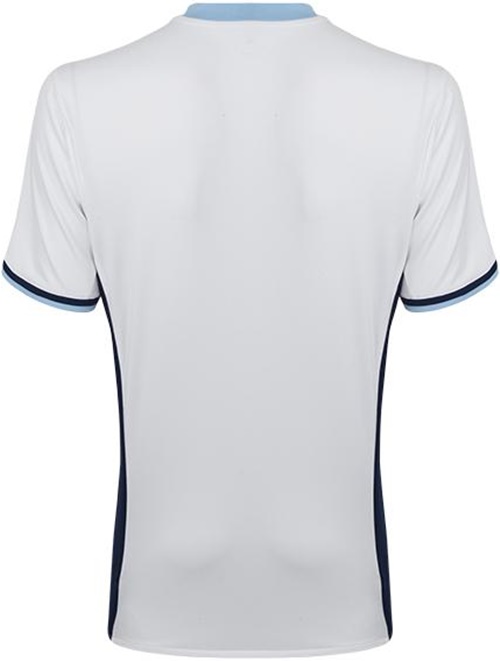 WBAの2016-17ホームは、伝統である白と紺のストライプを継続。シンプルな縦縞を採用する一方、差し色に水色を使用することによりモダンで新鮮味のあるデザインに仕上がった。