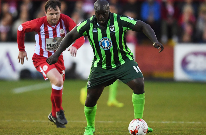 ウィンブルドンといえば、巨漢FWアデバヨ・アキンフェンワだ。34歳になったばかりの“野獣”は、アクリントン・スタンリー戦でも価値あるゴールを決めた。