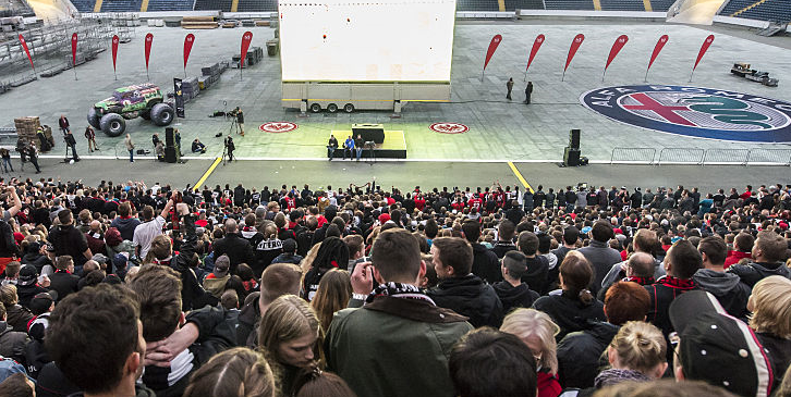 運命の2ndレグでは、フランクフルトの本拠地コメルツバンク・アレーナでもパブリックビューイングが行われた。