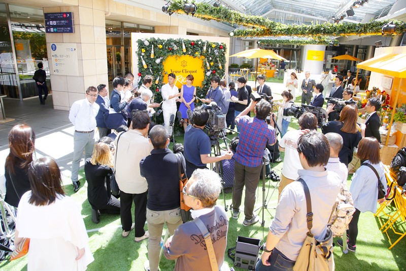 トークイベントが開催されたのは六本木ヒルズ。その大屋根プラザに6月3日(金)からオープンする「ヴーヴ・クリコ リッチ サマーラウンジ」は、フランスのシャンパンブランド『ヴーヴ・クリコ (Veuve Clicquot)』がミクソロジーのプロフェッショナルと連携し、新たに生み出したシャンパーニュ「ヴーヴ・クリコ リッチ」をひと足早く体験できるポップアップバーだ。