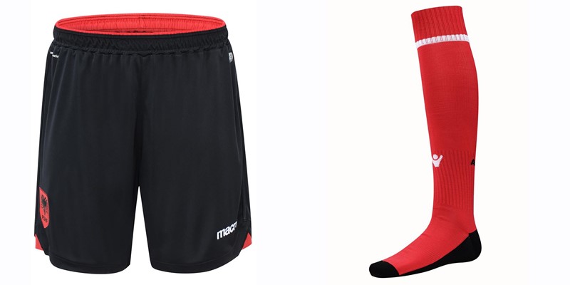 アルバニアはEURO2016に向けてMacronと契約。今大会に向けた新ユニフォームは伝統的な赤を基調に、国旗にも使われている「双頭の鷲」を模したボーダー柄のグラフィックな印象的なデザインとなっている。