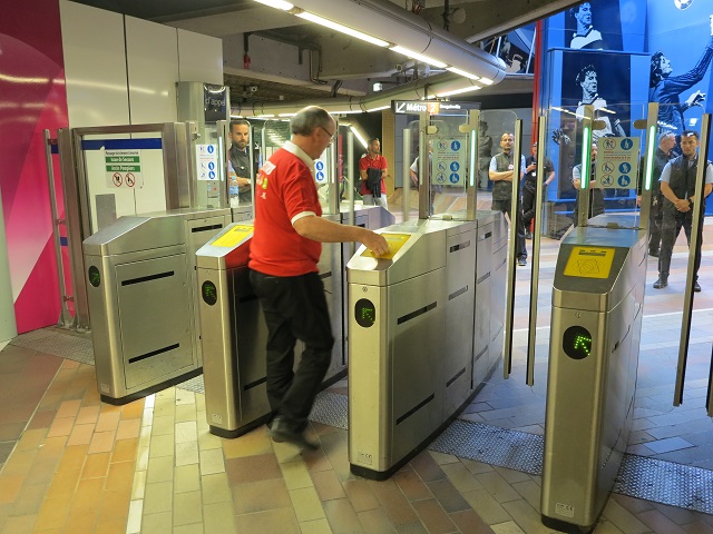 入場する際は、日本にあるICカード対応の改札同様に切符を当てる。すると改札が開く流れだ。