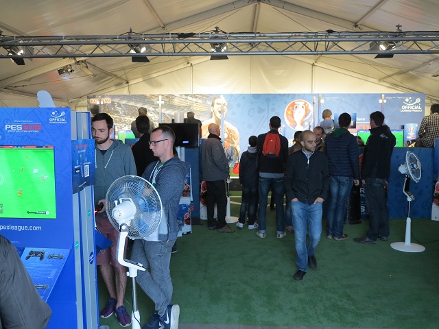他にも会場には大会スポンサーのブースがあり、オフィシャルビデオゲーム「UEFA EURO 2016 / ウイニングイレブン 2016(PES2016)」のプレー会場も。