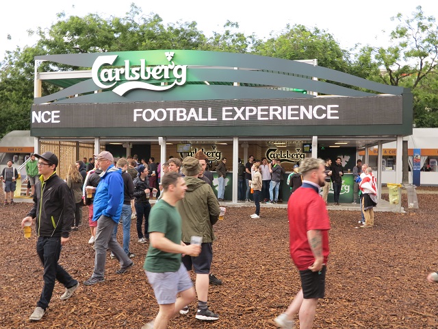 ビールはもちろん、公式スポンサーを務めるカールスバーグだ。