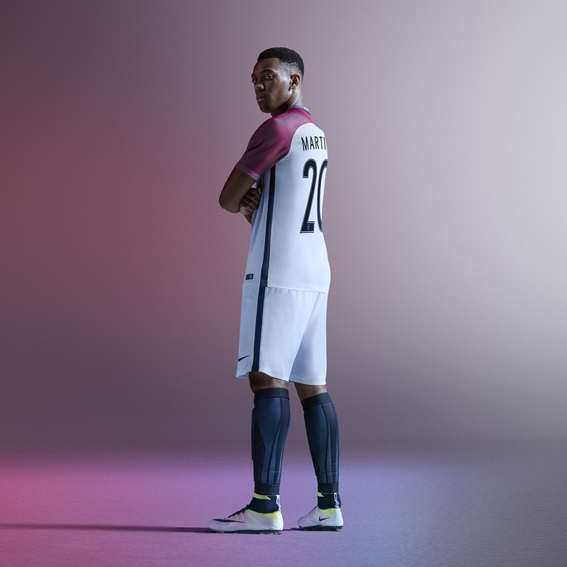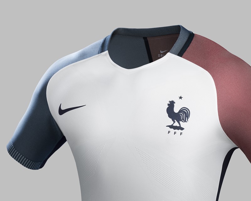 白を基調にフランス国旗のトリコロールを取り入れたデザインで、3月に発表され、EURO2016に向けた親善試合でも使用されていた。