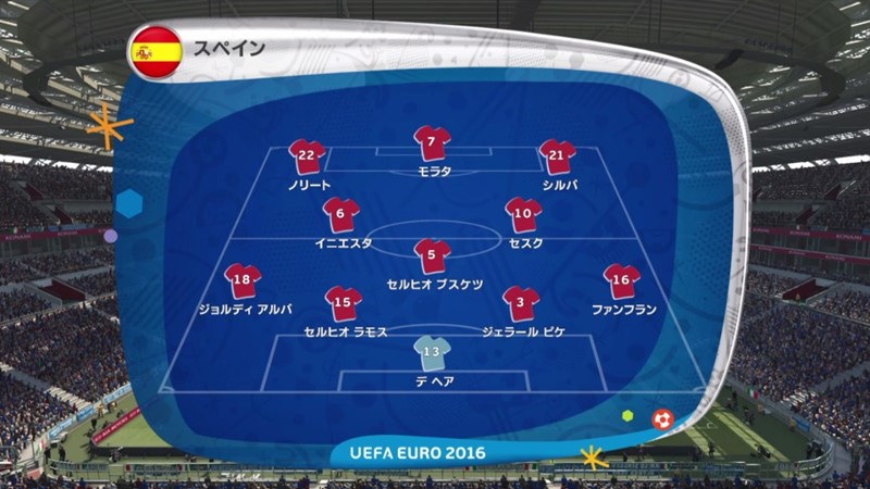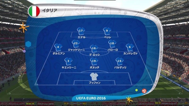 スタメンはグループステージ3試合を参考に、イタリアは3-5-2、スペインは4-3-3のシステムで組んだ。
