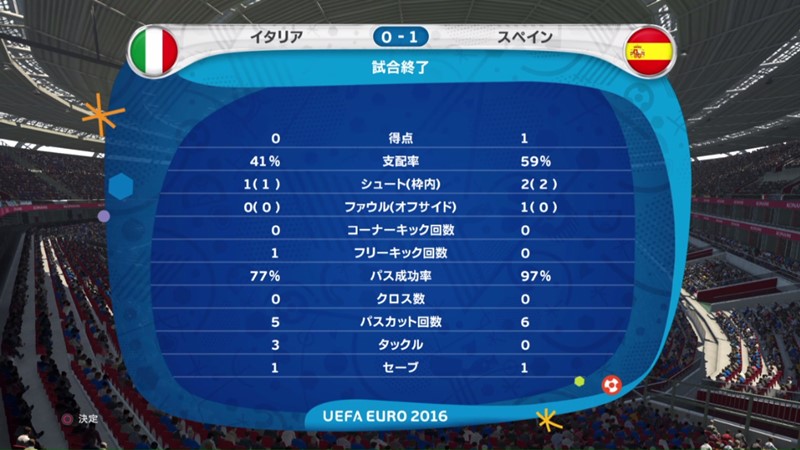試合の激しい攻防は動画にゆだねるとして、結果はこの通り。自慢のポゼッションスタイルが機能したスペインが前回大会同様イタリアを下し、準々決勝進出を決めている。