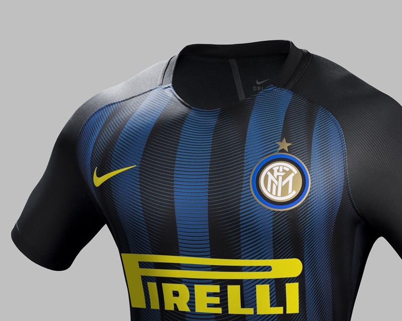 ホームは伝統の“ネッラズーロ”(黒と青)を基調に、グラデーションを採用したデザイン。アクセントしてNikeのロゴ「スウッシュ」やスポンサーロゴなどに黄色を使用している。