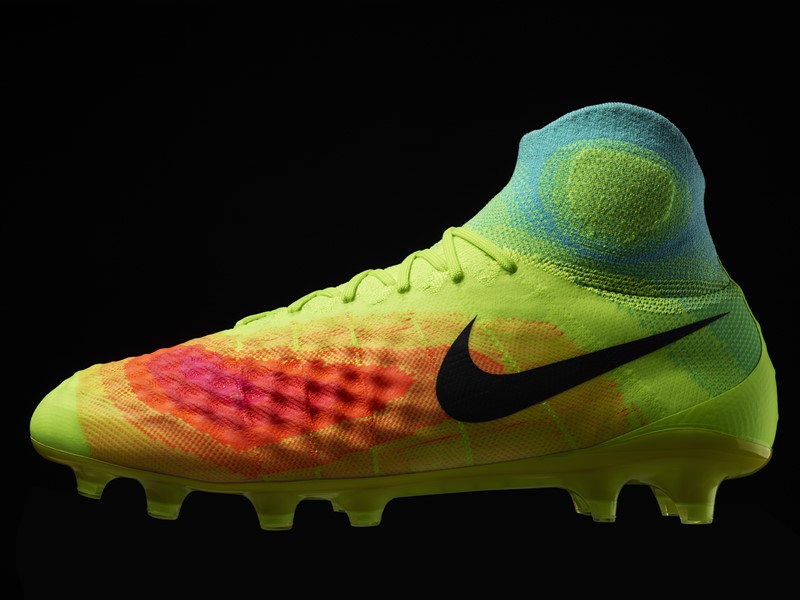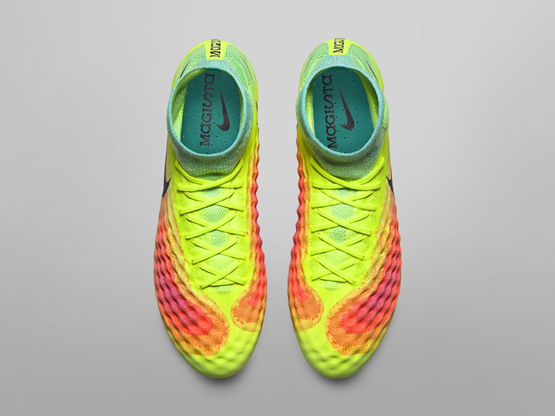 Nikeフライニットテクノロジーを用いたデザインはスパイクの印象を変え、ピッチ上で感じる印象やタッチを一新。繊細な動きに対しても足をしっかりサポートし、脳とボールの間にある“距離”をさらに近くした。