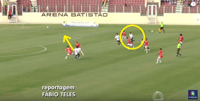 この時興梠は相手の最終ラインのかなり手前にいるが、中島はその動き出しが見えていたようだ。ダイレクトでここに出せるのはスゴい!