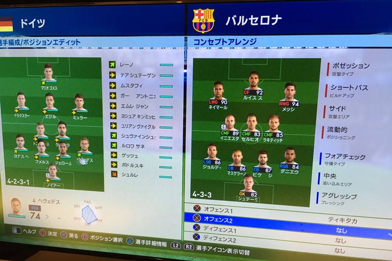 コンセプトアレンジはその一つ。オフェンスなら「ティキタカ」、ディフェンスなら「ゲーゲンプレス」などが簡単操作でゲーム中に即実行可能となっている。選手の動きも図入りで分かりやすく説明されていたぞ。