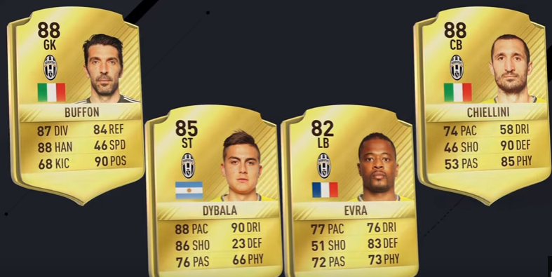 ユヴェントスの4人。パウロ・ディバラは大幅アップのはず。ゲーム内でも愛用者が増えそうだ。