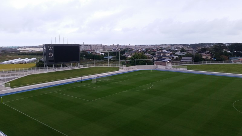 この多賀地区は2011年の東日本大震災で津波被害を受け、今後は住民の避難場所が必要となった地域。このスタジアムのメインスタンド中央部は管理棟を兼ねた4階建てのビルで、最上階は津波時の避難所や備蓄倉庫として、通常は地域の集会場として利用され、現在のスタジアムに欠かせない「防災機能」を充実させた設備になっている。