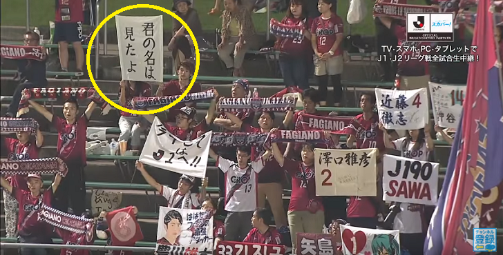 実は映画の中で登場する宮水三葉が住んでいる糸守町は岐阜県がモデルとなっており、はるばる長良川競技場にまで足を運んだ岡山サポーターがこのようなゲーフラを作ったというわけだ。