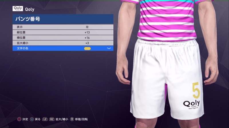 用意したユニフォームとロゴをそれぞれ反映。番号の位置も調整できる。