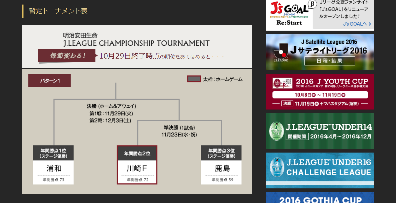 Jリーグ公式サイトより。10月29日時点でのトーナメント表。