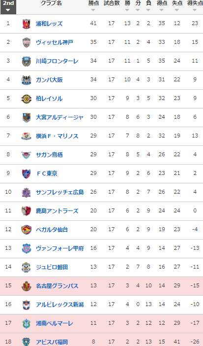 そして、アビスパ福岡、湘南ベルマーレに続き降格が決まってしまったのは、名古屋グランパス。このところは調子を上がてきていたが、最終節では湘南に1-3で敗戦し、オリジナル10のメンバーでもある彼らにとって初となるJ2降格が決まった。