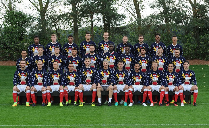 クリスマスシーズンが近付いてくると、アーセナルは必ずこんな集合写真を撮っている。