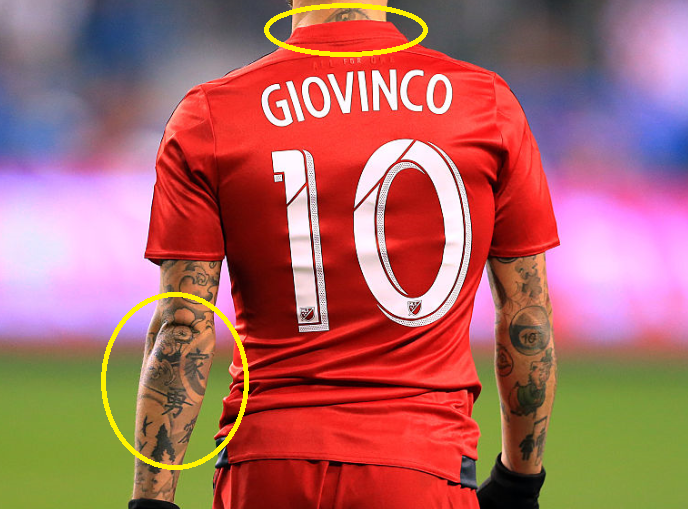 フットボール界には彼に限らずタトゥー愛好者は多い。MLSトロントFCのイタリア人FWセバスティアン・ジョヴィンコもそのひとりだ。その左腕には漢字らしき文字も…。