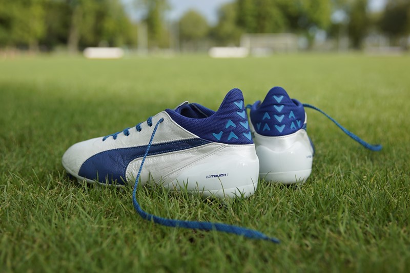 日本人プレーヤーのために開発された『エヴォタッチ J』は、アッパーに薄さとしなやかさ、そして高い耐久性を兼ね備えたカンガルーレザーを採用。軽量のエアメッシュライニングとつま先のステッチレス仕様とのコンビネーションが、今までに無いボールタッチ感覚を実現しているという。