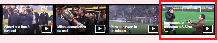 また、『Gazzetta dello Sport』でもサイトトップの動画一覧に長友のプロポーズが!