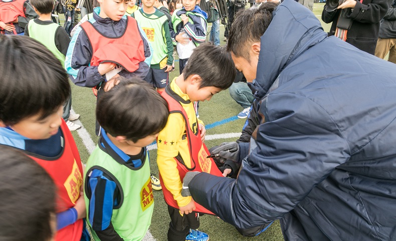 この日『ABC-MART スペシャルサッカークリニック』に参加した長友は、「よろしくお願いします!」の挨拶と共に登場。小学生16人を相手に共にミニゲームをプレーし、子どもたちとの交流を笑顔で楽しんだ。