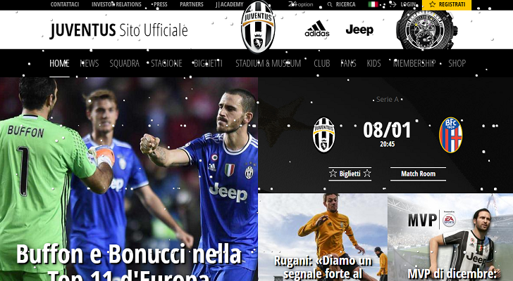 ユヴェントスの公式サイトを開くと、画面上部から雪が降ってくる演出がなされているのだ!