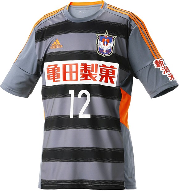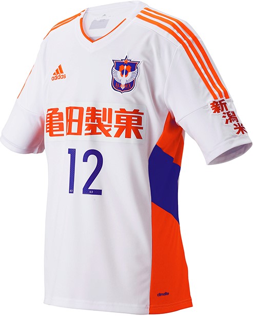 ユニフォームスポンサーは、胸の「亀田製菓」、背中上部の「コメリ」、袖の「JA全農にいがた」、パンツの「新潟日報」がいずれも継続。なお、胸スポンサーはホームに「ハッピーターン」、アウェイに「亀田製菓」のロゴが入る。