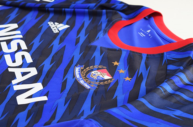 ホームは『スピードオブトリコロール』をコンセプトに、現代フットボールの勝利に必要不可欠なスピードを、マリノスブルーを中心とした「スピードグラフィック」で大胆に表現。