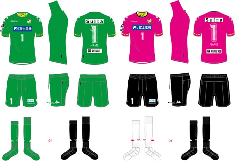 GKユニフォームは、緑のホーム、ピンクのアウェイという組み合わせ。