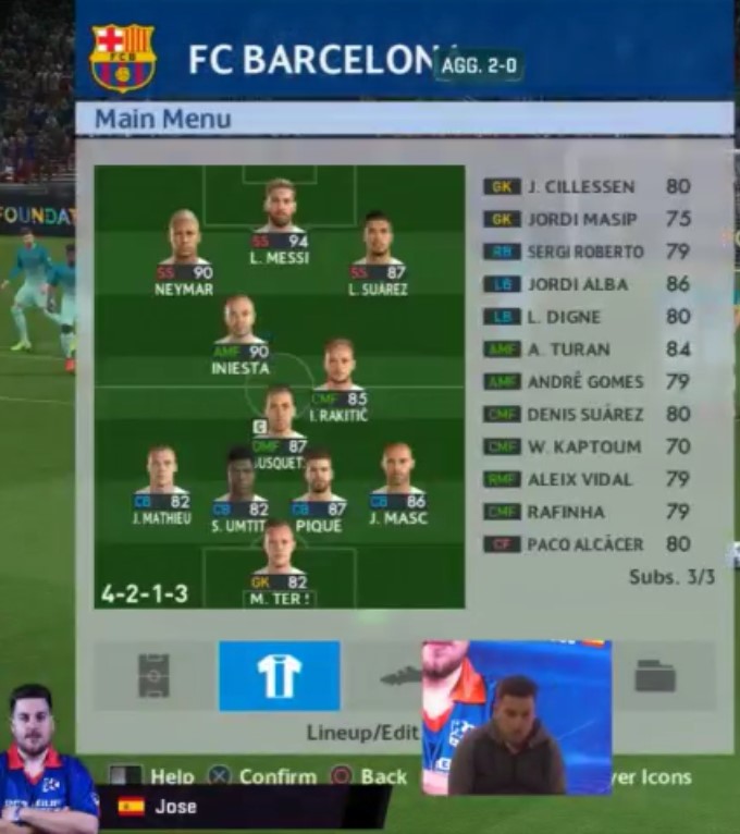 まずは優勝したスペインのjosesg93氏から。ちなみに、この大会は使用チームがKONAMIとライセンス契約を結んでいるクラブに限定されており、ほとんどの参加者がFCバルセロナを選択していた。