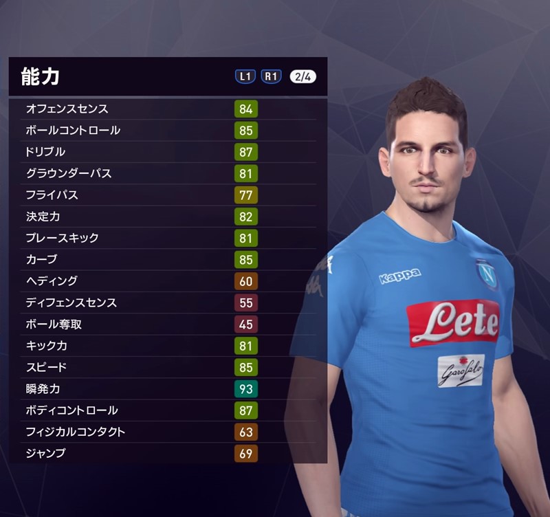 169cmと小柄ながら主に3トップの中央で起用され、今季リーグ戦でここまで16ゴール。CLでもチーム最多の4ゴールを記録しており、ホセ・カジェホンやロベルト・インシーニェ(こちらも身長163cm!)とともにリーグ最強の攻撃陣を牽引している。決定力82からの上昇が期待できる“小さな巨人”だ。