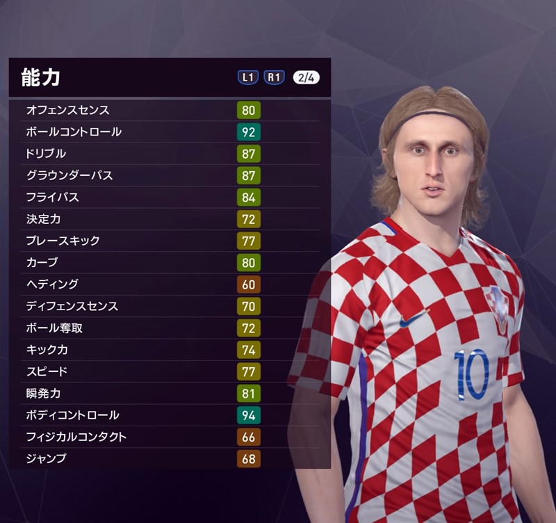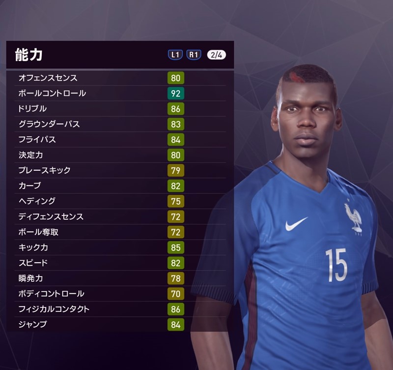 どちらかと言うと玄人好みのモドリッチに対し、191cmの長身に驚きのテクニックを備えるポグバは見るからに破格。ボールコントロール92も彼のプレーを見れば納得である。