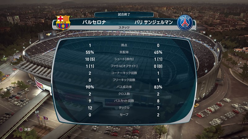 シュート本数10:1とバルサが圧倒。しかし、PSGは守護神ケヴィン・トラップを中心に最後のところで粘り、スアレスの1点以外を許さなかった。