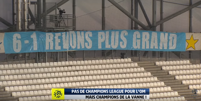そしてマルセイユのファンはCLの結果を受け、PSGに対して「夢は大きく」というバナーを掲げたというわけだ。これはもちろん、パルク・デ・プランスのものに呼応したものである。