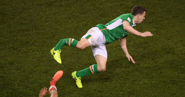 後半、相手DFニール・テイラーからタックルを受けたアイルランド代表DFシェイマス・コールマンは…。