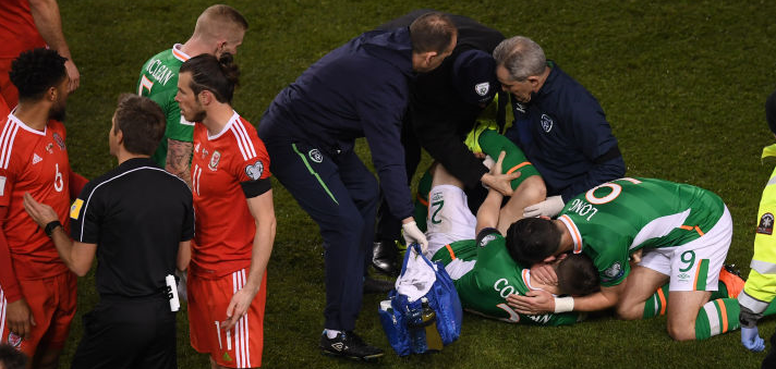一見して重傷と分かるダメージを負ったコールマンは、同僚FWシェイン・ロングに抱きしめられながら応急処置を施された後に緊急搬送された。